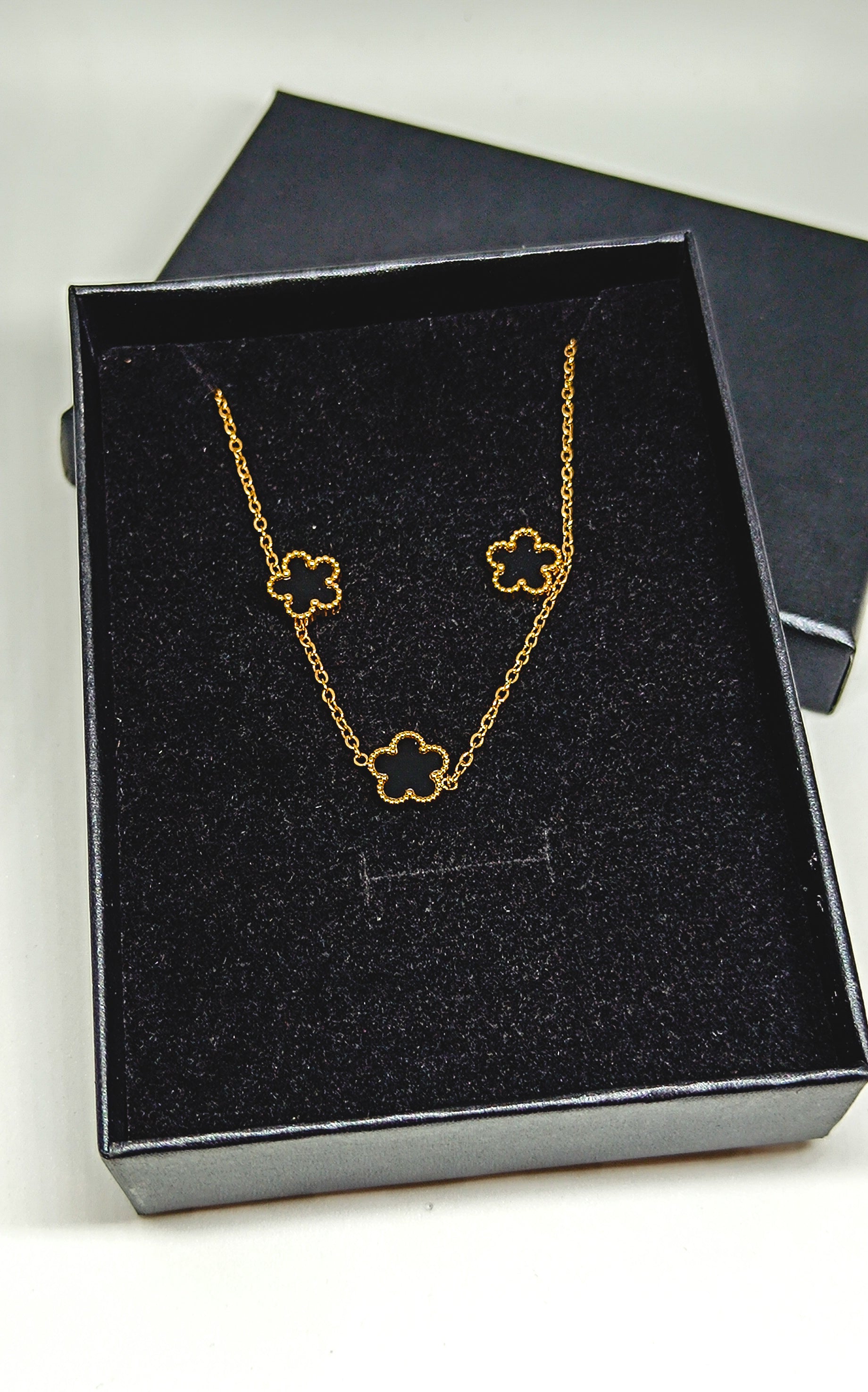 Conjunto de aço inoxidável composto por brincos e colar.
