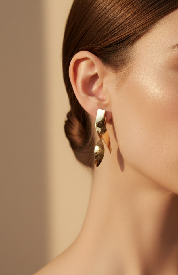 Com linhas curvas e um brilho dourado sublime, esta peça cria um efeito fluido que ilumina qualquer look — desde os mais simples aos mais sofisticados.