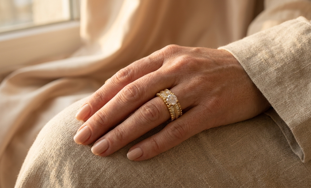 Dica de Estilo AnaClara Joias™: Combine-o com tons nude, bege e champanhe para realçar os reflexos quentes da peça e criar uma aura de sofisticação intemporal.