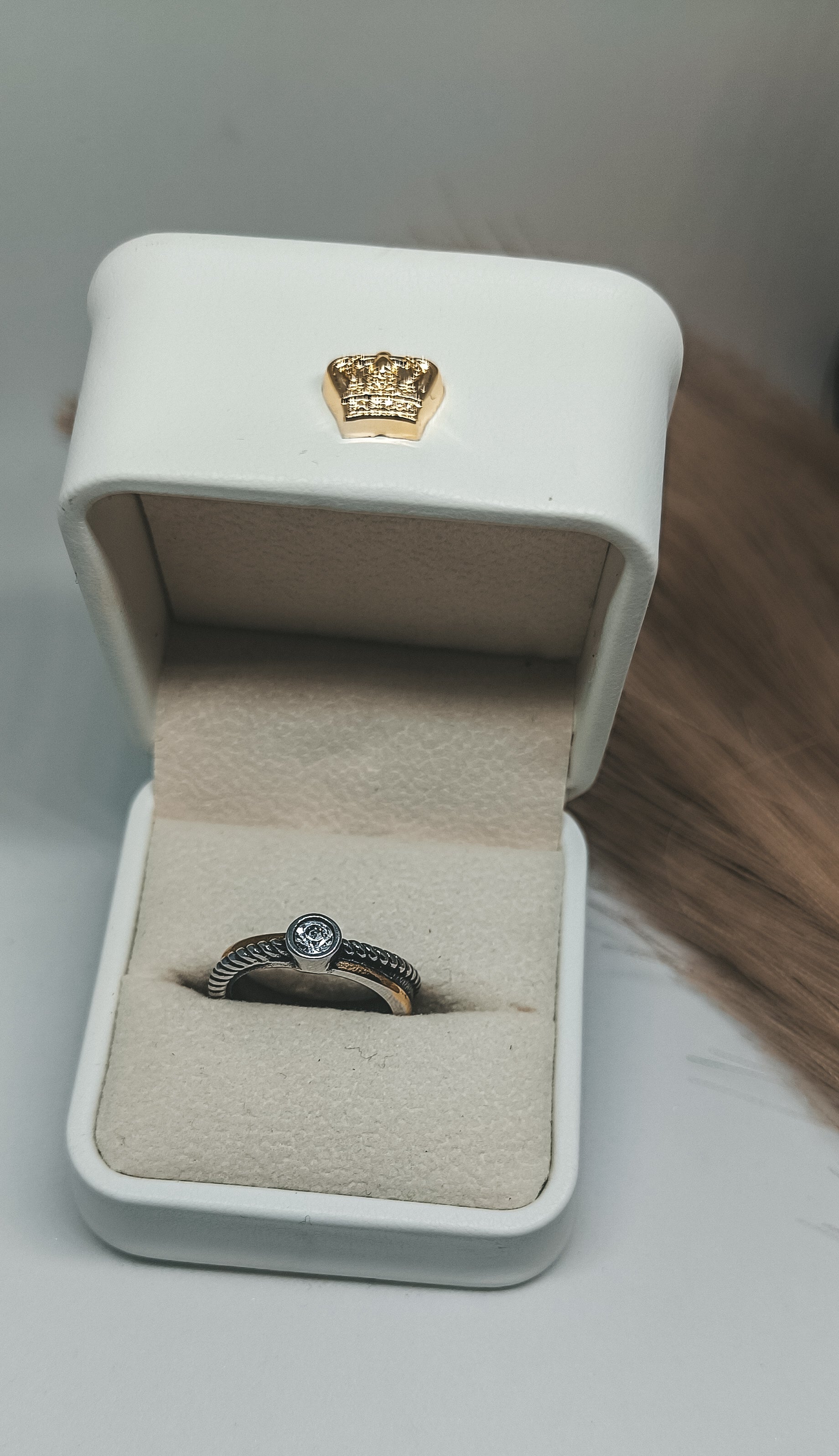 Lindo anel de aço inoxidável com banho de ouro 14K.