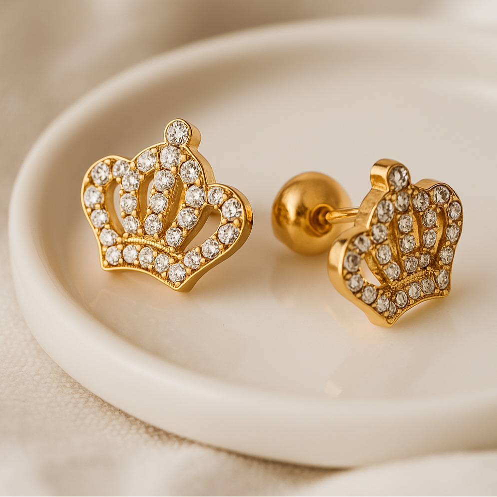 Brincos em aço coroa com brilhantes.